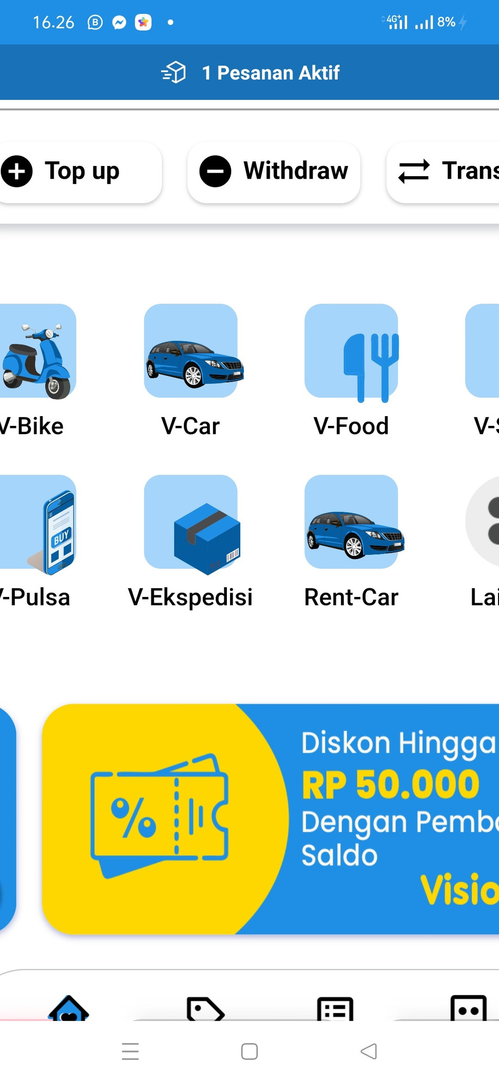 Vision jek suport pembayaran Virtual akun bank , Ewalet hingga pembayarn tunai ke driver.